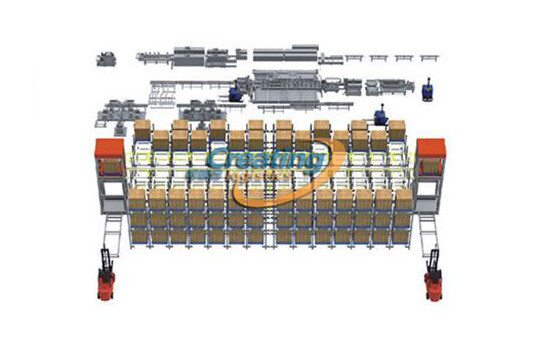 1.普通叉车+穿梭车货架系统。与堆垛机系统相比,这种系统的自动化程度虽不高,但成本低得多;另外,在同等仓储面积下可以容纳的货位更多。因为堆垛机系统在托盘货物载重1吨的情况下一般只能做到双伸位、最多三伸位存储,而穿梭车系统则可以做到十几个甚至几十个伸位,因此存储密度更高。