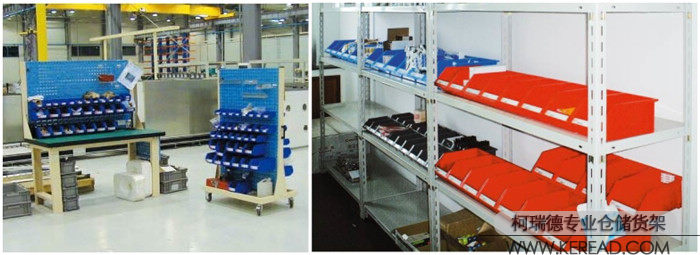 说到零件盒,它的协助功能更是强大,从货架到车间设备,许多产品都离不开它的帮助,看下图就能知晓,车间的各个工作桌挂板上、轻型货架上、流利式货架上还有置物柜、置物架等等。零件盒体积小、较轻便,适合小零件的存放,节省空间,提高工作效率。