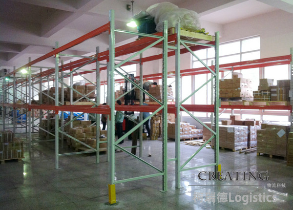 项目实施:机械产品相对来说是比较重的,公司选择重型货架来存储商品。由于我们是1100深度的货架,所以要求客户托盘的深度必须在1200以上。该企业使用叉车是全电动堆高车,所以我们设计的货架要保证叉车通道的宽度,这样便于全电动堆高车的作业。